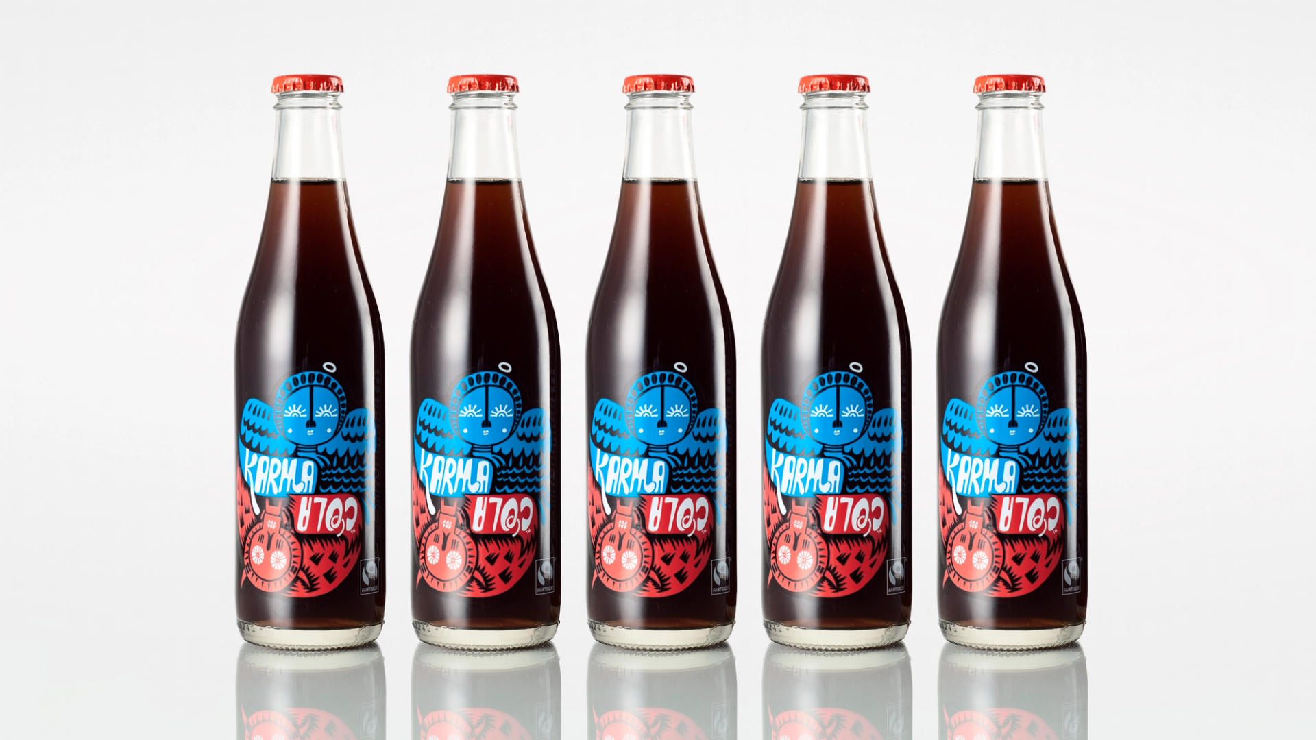 The detailing and insight enshrined in Karma Cola’s packaging design is deliberately at odds with most staple, premium or organic drinks—standing out on the shelf and in people’s minds.